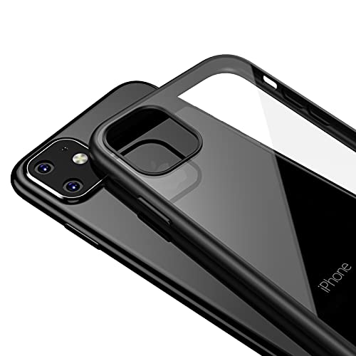 LAYJOY - جراب حماية من لايجوي مصنوع السيليكون المرن والبولي يوريثين المقاوم للحرارة بلون اسود شفاف مضاد للصدمات والخدوش مع واقي كاميرا متوافق ايفون 11 6.1 بوصة - ، أكريليك