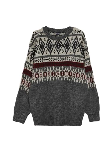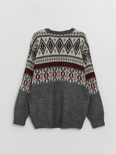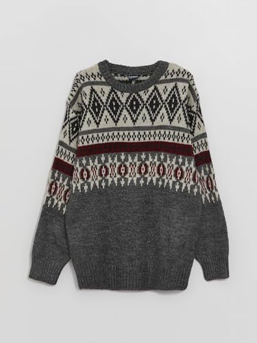 LC WAIKIKI - LC واكيكي سويتر تريكو منقوش برقبة دائرية ضيقة واكمام طويلة للاولاد بعمر 10-11 سنة لون رصاصي