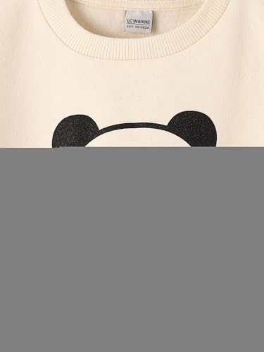 LC WAIKIKI - طقم ملابس للبنات مكون من سويت شيرت برقبة دائرية ضيقة وأكمام طويلة مزين بطبعة لطيفة مع بنطلون من ال سي وايكيكي