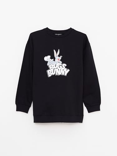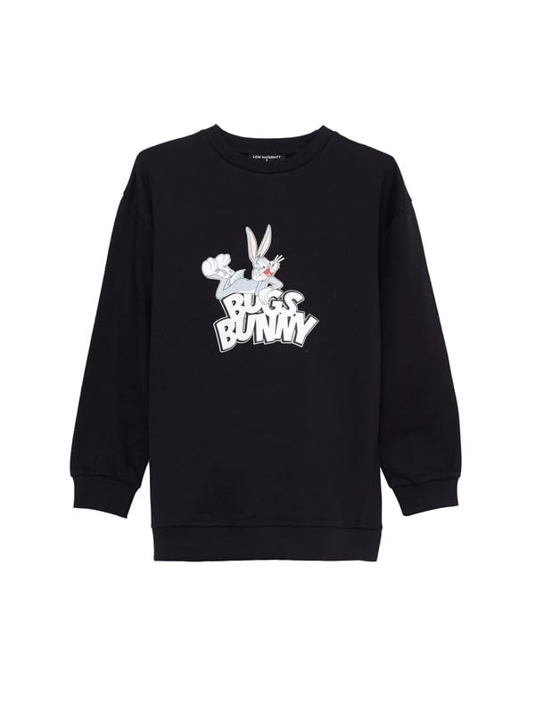 LC WAIKIKI - سويت شيرت للنساء من القطن بأكمام طويلة ورقبة دائرية ضيقة مطبوع عليه باجز باني من ال سي وايكيكي
