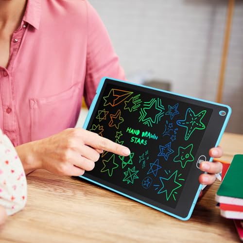 Coolzon - تابلت كتابة LCD ملون بشاشة مقاس 12 بوصة للأطفال، لوح رسم محمول قابل للمسح، لوح رسم رقمي، لعبة تعليمية للأولاد والبنات، أزرق من كولزون