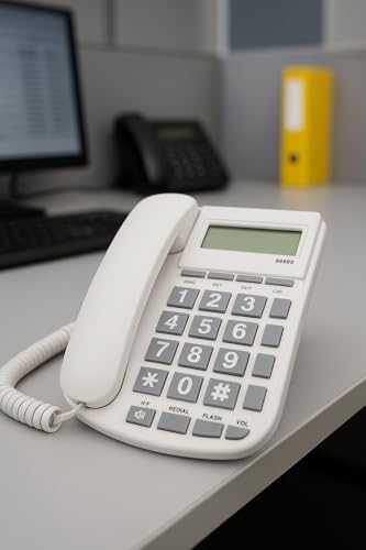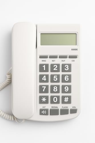 Generic - تيليفون ارضي بشاشة LCD لإظهار رقم المتصل - خاصية اعادة طلب اخر رقم - 24 نغمة رنين - حاسبة مدمجة - العدل-تك 888BE (ابيض)