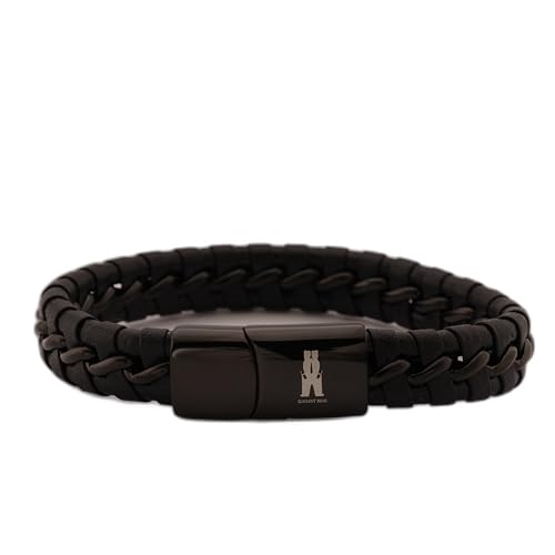 Generic - سوار جلد مضفر مع مشبك مغناطيسي، اسود
