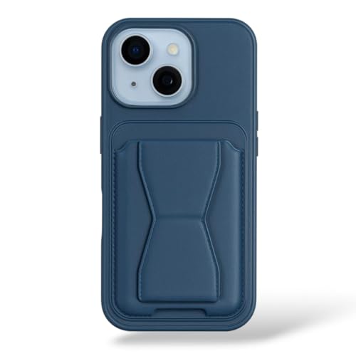 Generic - جراب حماية جلد متوافق مع موبايل آيفون 15 مقاوم للصدمات مع حامل مدمج من الجلد الصناعي لمظهر أنيق وقبضة مريحة من اس ال ستور (أزرق)