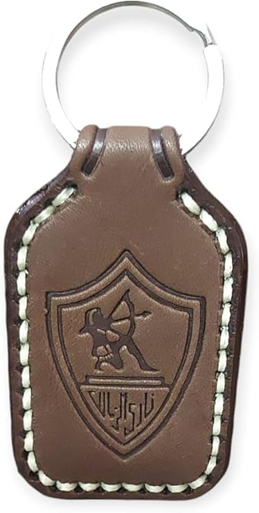 Generic - سلسلة مفاتيح جلدية بتصميم درع منقوش، خياطة بيضاء مزخرفة، بني