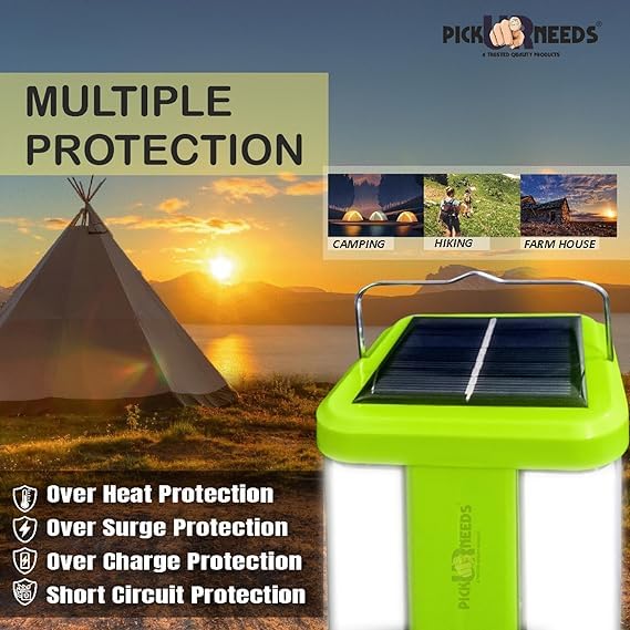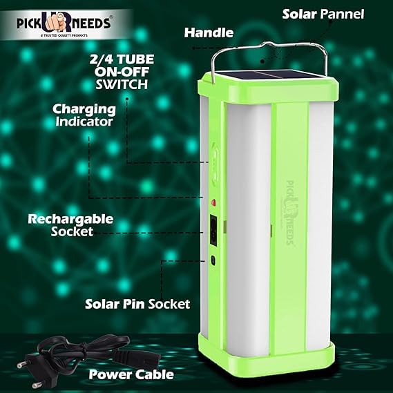 Generic - كشاف ليد يعمل بالطاقة الشمسية قابل لإعادة الشحن في حالات الطوارئ المنزلية 360°، مصباح أرضي يعمل بالطاقة الشمسية بـ4 أنابيب جانبية، أخضر