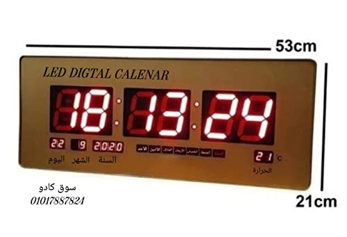 Generic - ساعة حائط رقمية باللون الفضي مقاس 53 × 21 بوصة بارقام عربية واضاءة LED الاحمر متوفرة فقط لدي كادو ماركت أسود بولي فينيل كلورايد PVC
