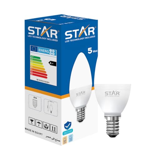 Star Trans - مصباح LED E14 بقدرة 5 واط، مصباح موفر للطاقة، ابيض ساطع 6500 كلفن، 500 لومن، قاعدة E14 قياسية، عمر افتراضي طويل، اضاءة صديقة للبيئة (50 قطعة)