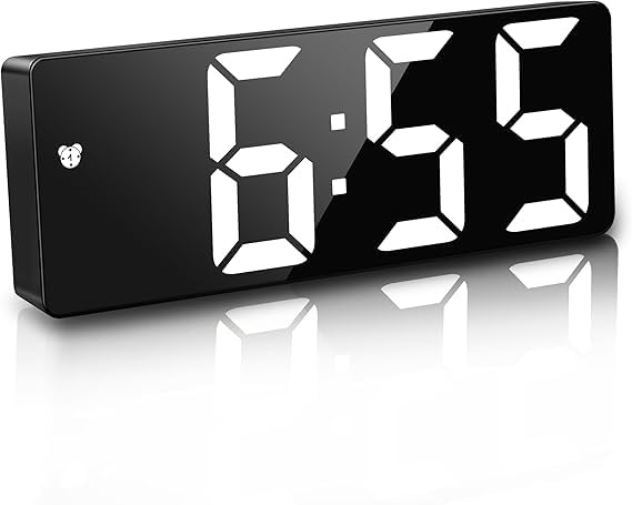 - ☞ شاشة LED كبيرة وخاصية الغفوة: تتميز ساعة المنبه الديجيتال هذه بشاشة LED كبيرة مقاس 6.7 بوصة، مما يجعلها سهلة القراءة، كما يمكن استخدامها كمرآة؛ واحدة من أفضل ساعات المنبه لغرف النوم بسبب بساطتها، فهذه الساعة الفاخرة هي شيء ستستمتع به عند الاستيقاظ كل صباح. يساعدك زر الغفوة على إيقاف حلقة التنبيه بسهولة دون فتح عينيك. يمكن ضبط وقت الغفوة من 1 إلى 60 دقيقة (وقت الغفوة الافتراضي هو 5 دقائق).