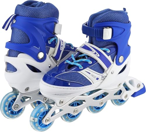 Generic - حذاء تزلج مريح قابل للتعديل مع عجلة امامية باضاءة LED، حذاء تزلج بصف عجلات واحدة للاستخدام الخارجي والداخلي للمبتدئين والاطفال والمراهقين مقاس كبير (L) - أزرق