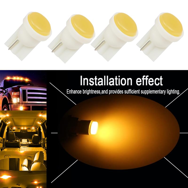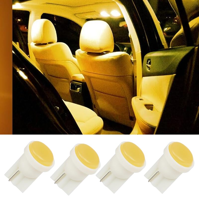 Generic - مصابيح LED SMD T10 قاعدة اسفينية لمصباح وقوف السيارة/ مؤشر جانبي/ مصابيح لوحة ارقام ( COB T10 اضاءة اصفر ، 4 قطع ) - من كابر تريد
