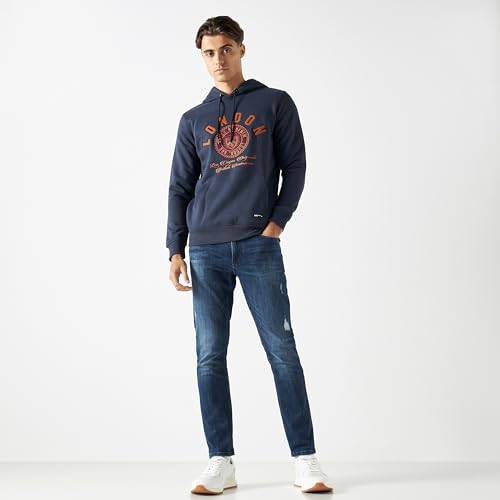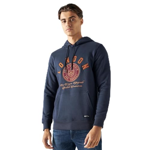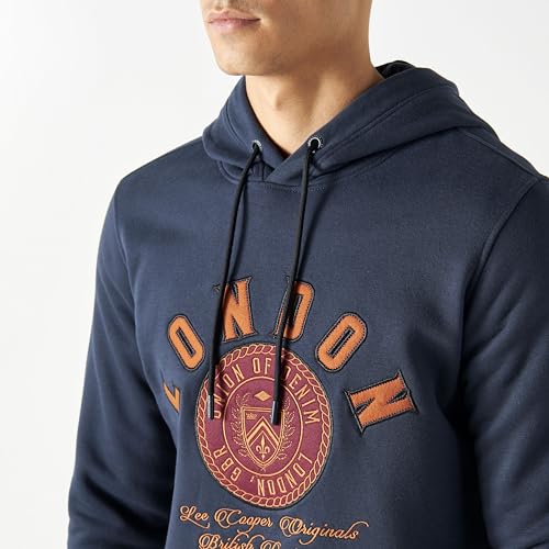 Lee Cooper - سويت شيرت بغطاء رأس مطرز واكمام طويلة وجيب متصل للرجال