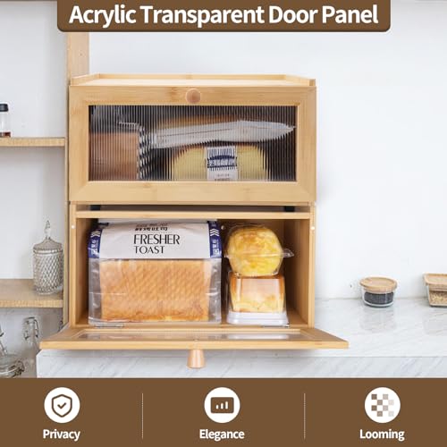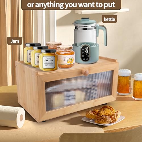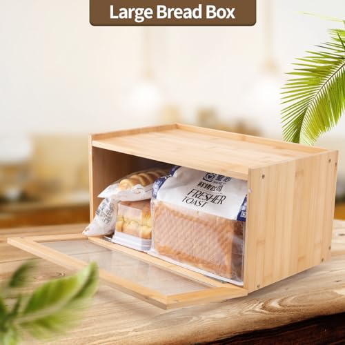 LEIMO KPARTS - صندوق خبز من الخيزران بسعة كبيرة لطاولة المطبخ، بتصميم ريفي، حامل خبز مزود بفتحة شفافة من ليمو كي بارتس