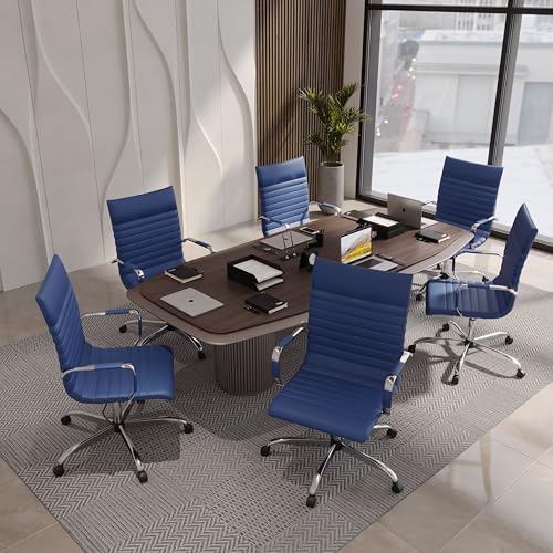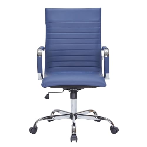 LeisureMod - كرسي مكتب عصري دوار قابل للتعديل بظهر مرتفع مصنوع من الجلد هاريس من ليجرمود، أزرق كحلي