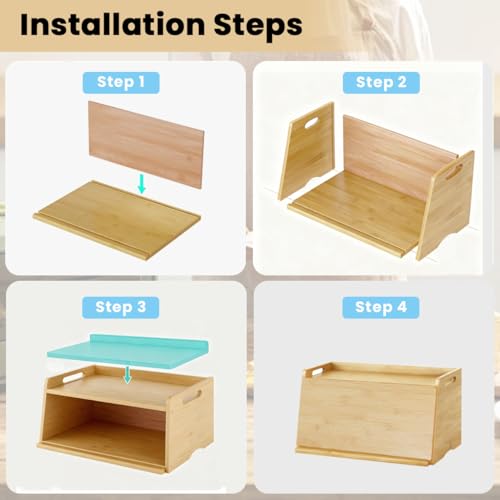 - خيزران طبيعي 100%: صندوق الخبز هذا مصنوع من الخيزران والخشب عالي الجودة، بحرفية رائعة. نولي أهمية كبيرة لجودة المنتج. هيكل قوي. يحافظ على خبزك طازجًا لفترة أطول مع إضافة سحر ريفي إلى مطبخك.