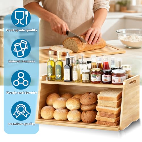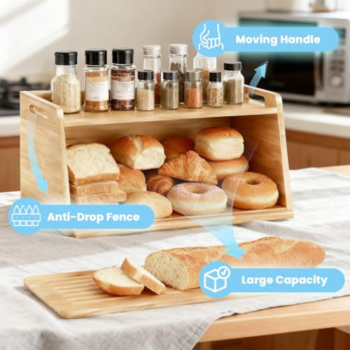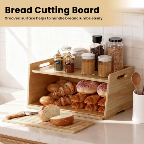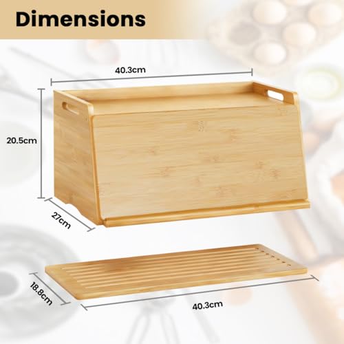 LEMIKKLE - صندوق خبز من الخيزران مع لوح تقطيع من ليميكل - صندوق تخزين الخبز للحفاظ على الطعام طازجًا، مناسب للمطبخ، يمكن استخدامه لتخزين الخبز والفواكه والمخبوزات