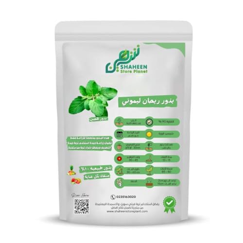 - بذور ريحان ليموني طبيعية: عبوة تحتوي على 50 بذرة هجين بجودة عالية ونقاوة 90% من علامة SHAHEEN Store Planet