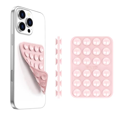 LENOK - جراب موبايل سيليكون مزدوج الجوانب بقاعدة لاصقة قابلة للفصل من لينوك- بدون استخدام اليدين، حامل قبضة قوي لصور السيلفي ومقاطع الفيديو - متين وسهل الاستخدام - مناسب للايفون والاندرويد (لون وردي طباشيري)