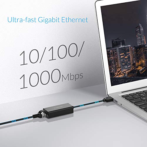 LENTION - محول شبكة جيجابت ايثرنت USB 3.0 إلى RJ45 لشبكة محلية LAN ايثرنت بسرعة 1000/100/10 ميجابت لكل ثانية من لينشين (أسود)