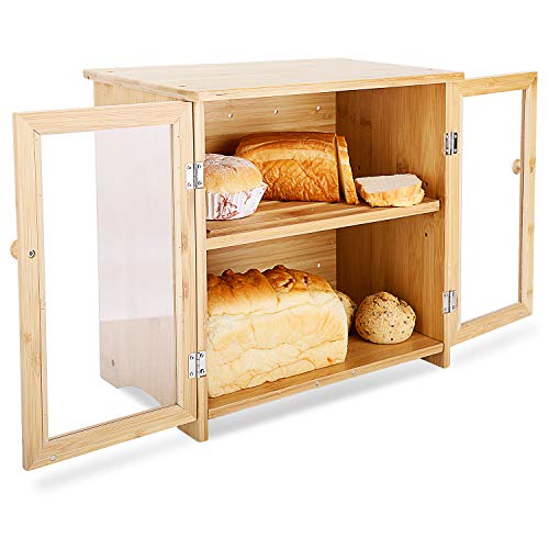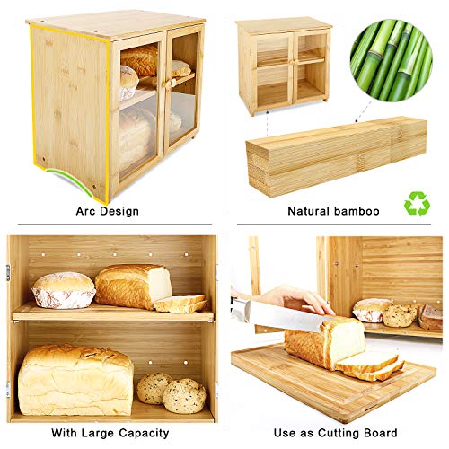 - [تصميم باب مزدوج - نافذة اكريليك شفافة] صندوق خبز بتصميم باب مزدوج، يمكن فتح الأبواب المزدوجة بمقدار 180 درجة، لتسهيل إخراج الخبز؛ كل باب بمقبض والأبواب تحتوي على نافذة شفافة من الاكريليك لتمكينك من رؤية محتويات الصندوق مباشرة.