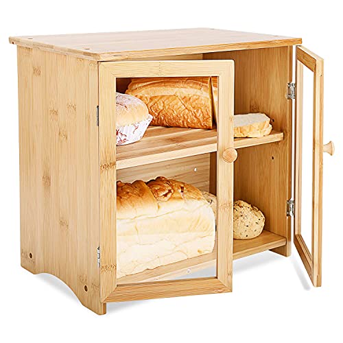 Leopard Outdoor Products - صندوق للخبز من ليوبارد اوت دور برودكتس، مصنوع من البامبو الطبيعي، صناديق تخزين من طبقتين من البامبو بغطاء لوح تقطيع بمساحة تخزين قابلة للتعديل وسعة كبيرة لتخزين الطعام، لون بيج فاتح (A-Natural)