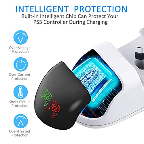 - شاحن مزدوج سريع لجهاز PS5: يمكن لشاحن وحدة التحكم دوال سينس لجهاز PS5 شحن وحدة التحكم المزدوجة بسرعة في نفس الوقت. سيستغرق الشحن الكامل ما يقرب من 3.5 إلى 4 ساعات. توفر وقتك ومساحتك. (ملاحظة: يرجى استخدام محول طاقة 5 فولت 2 أمبير مع واجهة من النوع سي لشحن أفضل، وحدة تحكم بلاي ستيشن 5 وأجهزة التحكم غير متضمنة)