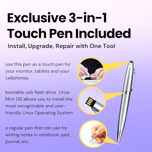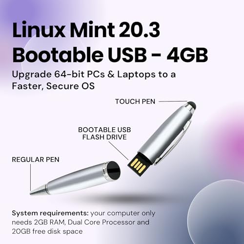 CHISOFT - ذاكرة فلاش لينكس مينت 20.3 USB قابلة للتشغيل بسعة 4 جيجابايت مع قلم لمس 3 في 1 لتثبيت أو ترقية أو إصلاح أجهزة الكمبيوتر واللاب توب 64 بت بنظام تشغيل لينكس مستقر
