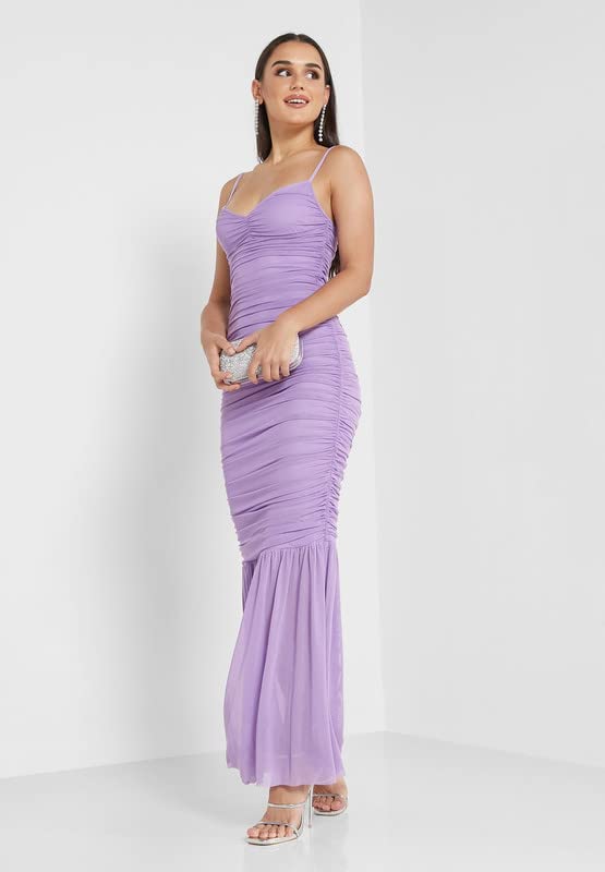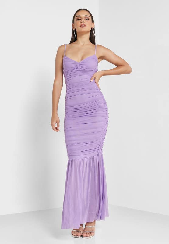 Little Mistress - ليتل ميستريس فستان ماكسي بكشكشة بولي للنساء مقاس M بنفسجي فاتح