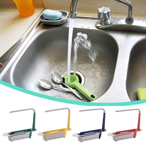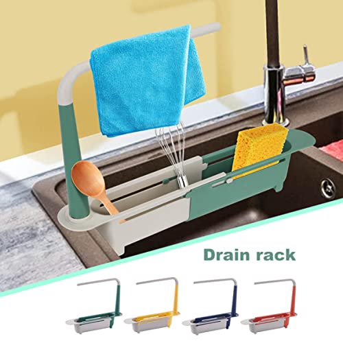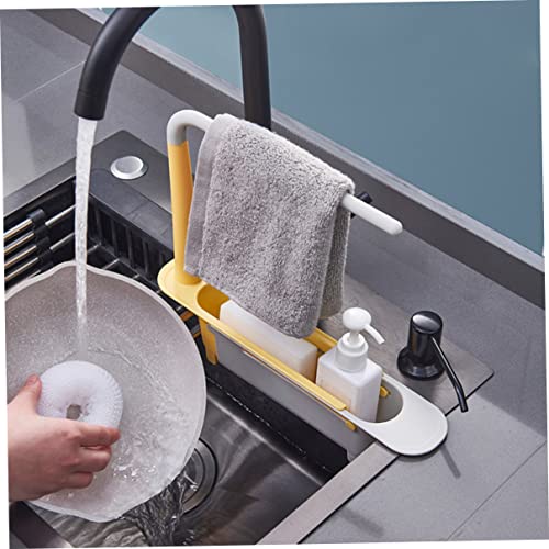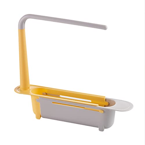 Liummrcy - رف تخزين تلسكوبي للحوض قابل للتوسيع 2 في 1، رف حوض تلسكوبي 2 في 1، رف تصريف الحوض مع درج وحامل اسفنجي قابل للتعديل 2 في 1، منظم حوض للمنزل والمطبخ، اصفر