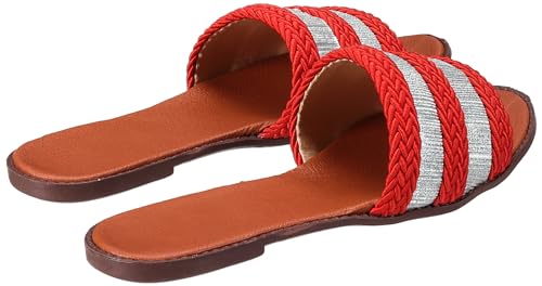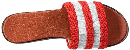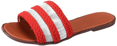 LKOER - شبشب مسطح سول 2 سول بأحزمة مخططة من الخيش بلون فضي وذهبي من لكوير، لون برتقالي، مقاس 37