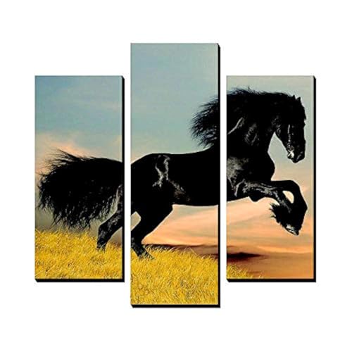 Al Adham - تابلوه لوحة فنية من القماش بتصميم خيول عصري طراز AH_0001 من لو 2 لو 2 ديكور،تابلوه من 3 قطع، متعدد الألوان