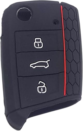 Generic - جراب مفاتيح سيارة من السيليكون، 3 أزرار، أسود مع أحمر ، من لوكي بوي .