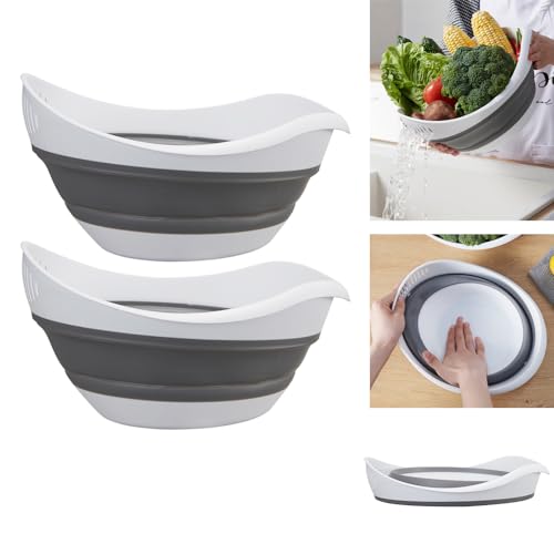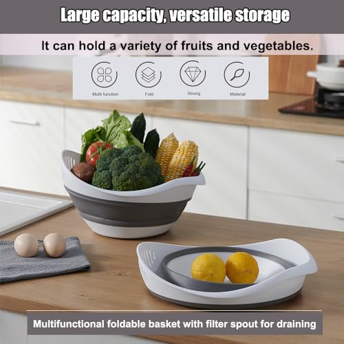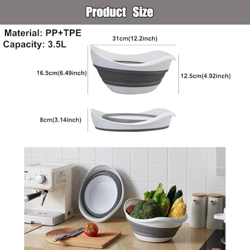 LogFaadCoi - مصفاة وصفاية قابلة للطي مع فوهة من لوج فادي كوي، مصفاة سيليكون قابلة للطي وصفايات طعام للخضروات والفاكهة، مستلزمات المطبخ (2، أبيض، 3.5 لتر + 3.5 لتر)