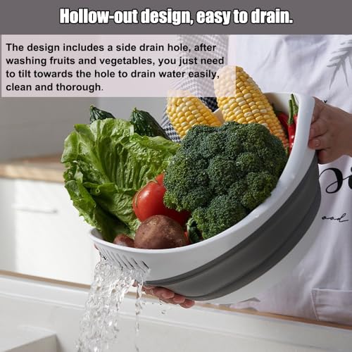 - 【استخدام عملي】: سلة التصريف متعددة الوظائف القابلة للطي ليست مثالية فقط لغسل وتصريف الفواكه والخضروات والمكرونة ولكنها تعمل أيضًا كحاوية تخزين لهذه العناصر. سواء كنت تحضر وجبة أو تقدم سلطة، فإن هذه السلة هي أداة أساسية. -