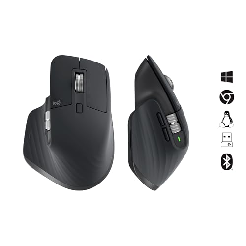 Logitech - ماوس ام اكس ماستر اس 3 من لوجيتك، أداء لاسلكي وتمرير سريع للغاية، تصميم مريح و8000 نقطة في البوصة ويعمل على الزجاج، بصوت هادئ ومنفذ USB نوع سي وبلوتوث وويندوز ولينكس وكروم، كروم-جراي