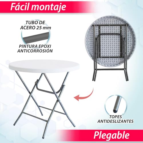 LOLAhome - طاولة حديقة قابلة للطي من بولي ايثيلين عالي الكثافة وصلب بلون أبيض، ترابيزة للأماكن الخارجية من لولا هوم، قطر 80 × 74 سم
