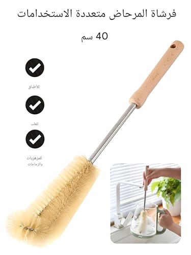 Generic - فرشاة اكواب بمقبض طويل - شعيرات من الستانلس ستيل مع مقبض خشبي لغسل الزجاجات ونظارات المطبخ والاواني المنزلية، اللون كما هو موضح