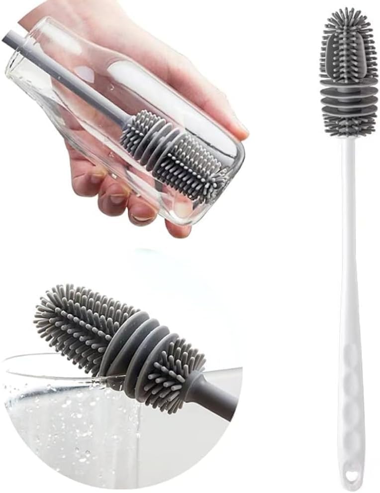 - فرشاة سيليكون بمقبض طويل: تجعل التنظيف اليومي أسهل وأسرع وأفضل مع فرشاة اليد الطويلة المصنوعة من السيليكون. مصنوعة من مادة السيليكون الآمنة غذائيًا. ستساعدك فرشاة الزجاجات هذه على الوصول إلى كل ركن من أركان الزجاجة لمنع تراكم البقع السيئة أو التسبب في الروائح. شعيرات فرشاة السيليكون الناعمة والمرنة قوية على المواد اللاصقة ولكنها لطيفة بما يكفي لتترك الزجاجة خالية من الخدوش