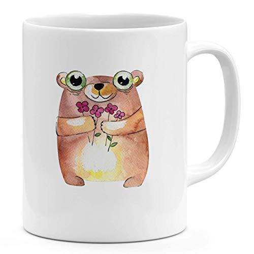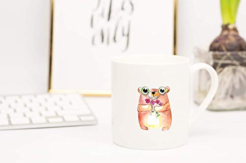 Loud Universe - لاود يونيفيرس مج من السيراميك بتصميم دب كرتوني وزهور لغرفة الاطفال، أبيض