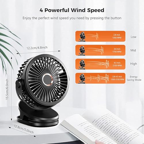 - 【تدفق هواء هادئ قوي】: يعمل الدوار ذو الثلاث شفرات ومحرك بدون فرش على دفع النسيم القوي مع البقاء أقل من 20 ديسيبل، مما يسمح للأطفال بالنوم والتركيز؛ يعمل تدفق الهواء الثابت على تبريد السيارات والخيام وغرف النوم دون خشخيشات أو إعادة تعديل متكرر.