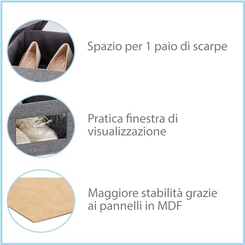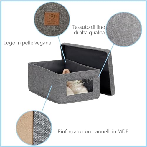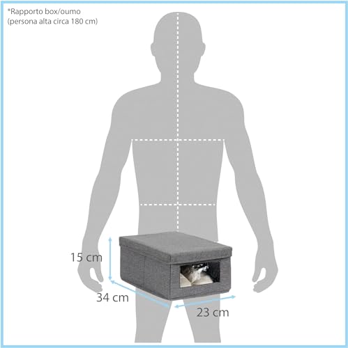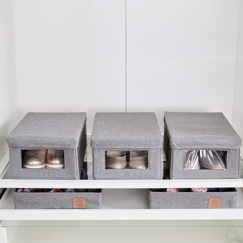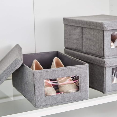 LOVE !T STORE !T - صندوق تخزين بغطاء، صندوق أحذية من القماش، معزز بالورق المقوى مع نافذة عرض، تصميم قابل للتكديس من لاف ات ستور ات، بلون رمادي، مقاس 23 × 34 × 15 سم