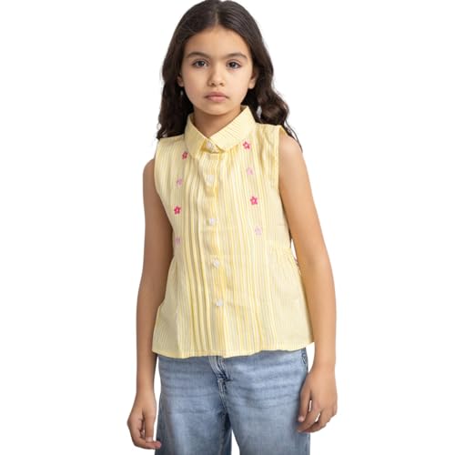 lovely land - بلوزة عصرية للبنات مع ياقة وخياطة على شكل زهور من لوفلي لاند، لون أصفر