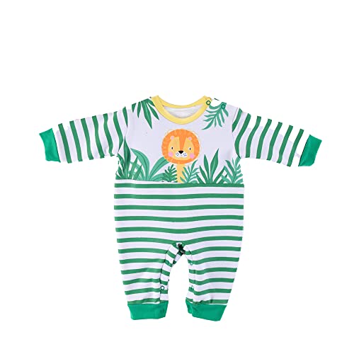 Lumex - سالوبيت بكباسين من الصوف الناعم بطبعة اسد من لوميكس للاولاد بعمر 0-3 شهور - لون اخضر