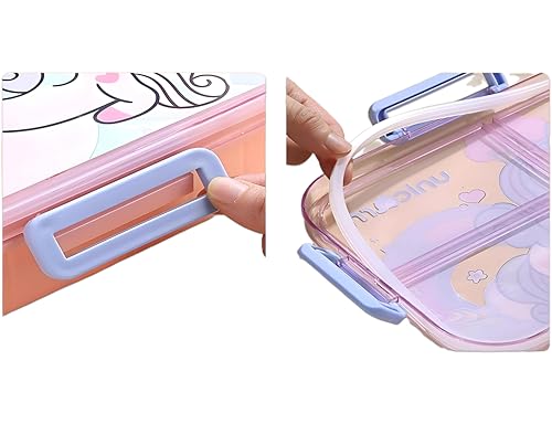 Generic - صندوق غداء - بسعة 1200 مل للأطفال مع 3 أقسام وحاوية سلطة سعة 80 يتميز بنمط يونيكورن ممتع أدوات مائدة لتناول مدرسي مريح البولي بروبلين متعدد