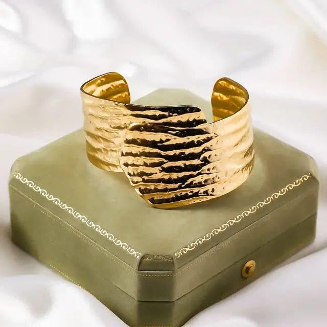 Generic - سوار عريض فاخر مطلي بالذهب ومطروق