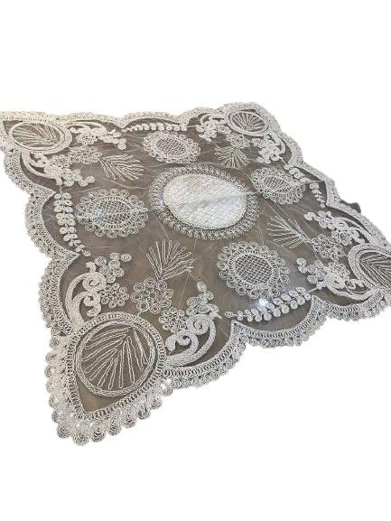 Generic - مفرش طاولة (سفرة) دانتيل مطرز فاخر - تصميم ملكي كلاسيك - مقاس [اكتب المقاس هنا مثلاً 100×100 سم] - لون أوف وايت