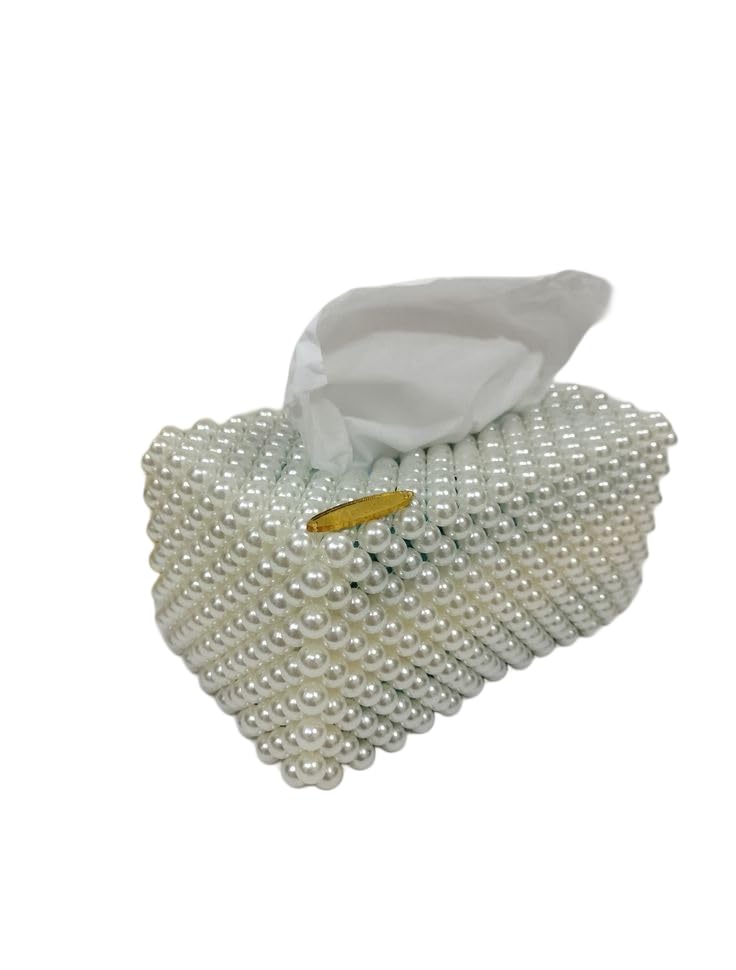 Generic - علبة مناديل فاخرة مزينة باللؤلؤ الأبيض، تصميم كلاسيكي أنيق، حامل مناديل ديكوري للمنزل والمكتب، صناعة CCB