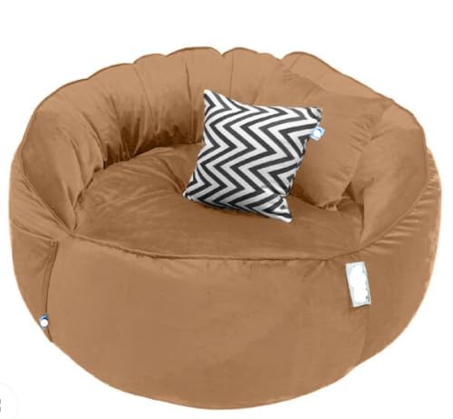 Generic - كرسي بين باج قطيفة فاخر، مقاس كبير جدا، 80× 70 × 100 سم، مع وسادة شيفرون - (لون بيج)
