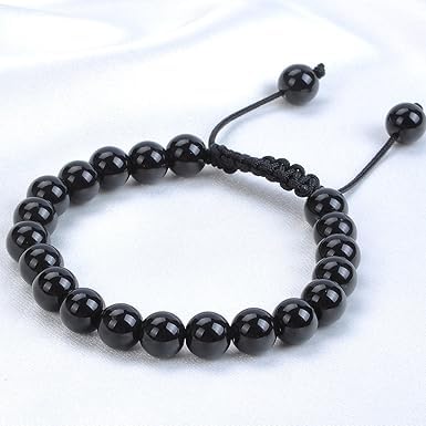Generic - سوار قابل للتعديل من خرز العقيق اليماني الاسود من ام ايه اس، احجار كريمة شبه ثمينة 8 ملم للجنسين (اونيكس، 8 ملم)
