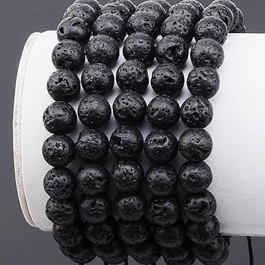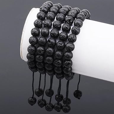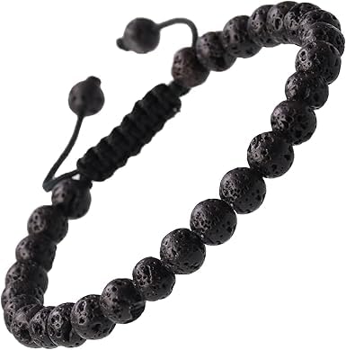 Generic - اساور مكرمية من الاحجار الكريمة الطبيعية العلاجية للجنسين من ام ايه اس، اساور مكرمية قابلة للتعديل، 6 ملم، حجر، حجر لافا